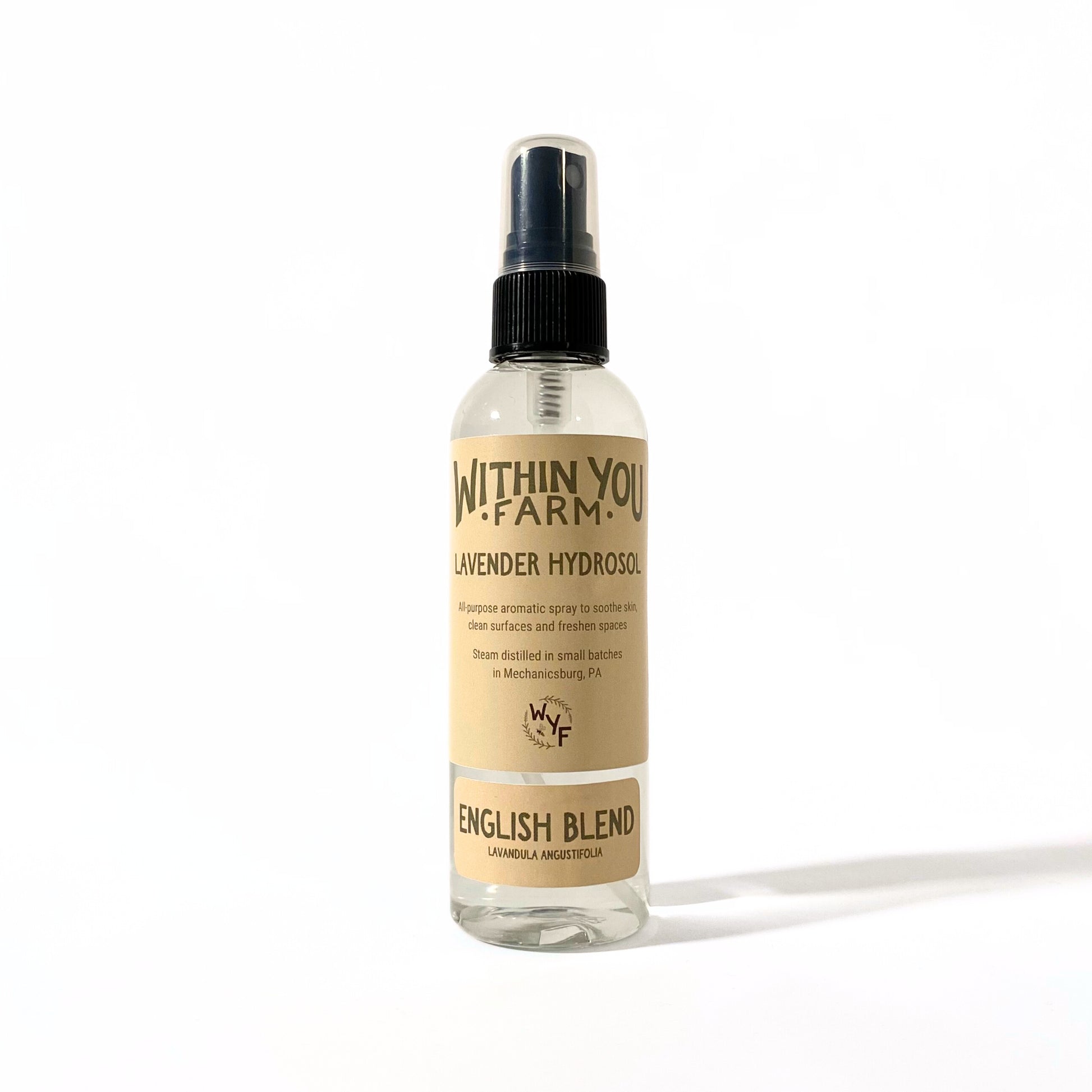 Hydrosol can differ depending on the cultivar or variety of lavender that it is distilled from. There are many types of lavender, similar to how there are many types of wine, and we grow several cultivars of "English" and "French" lavender here at Within You Farm. The difference between our English blend and French blend is subtle but noticeable. In terms of smell, English tends to be lighter, almost sweet, while French tends to be darker and slightly woodier.