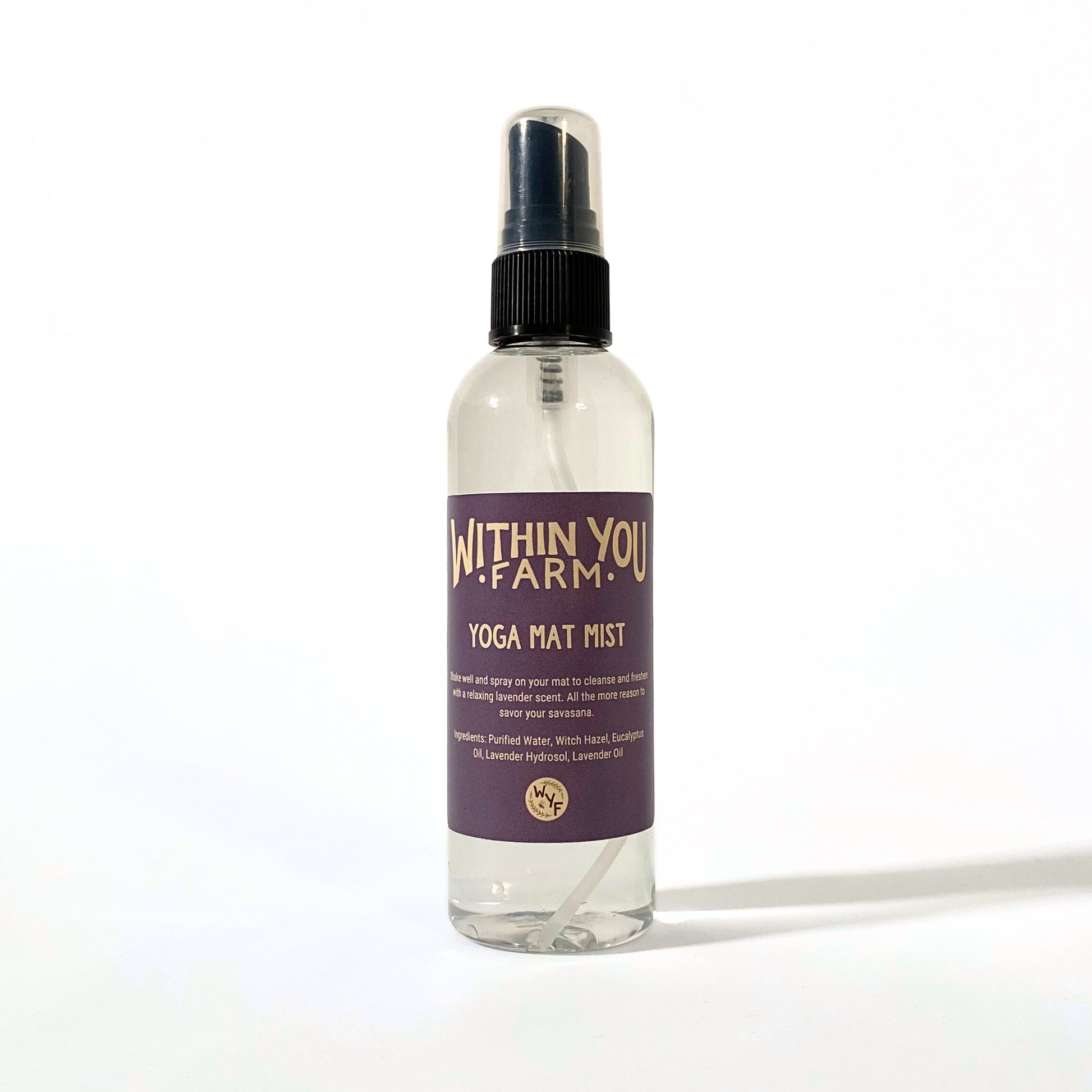 Shake well and spray on your mat to cleanse and freshen with a relaxing lavender and eucalyptus scent. All the more reason to savor your savasana.